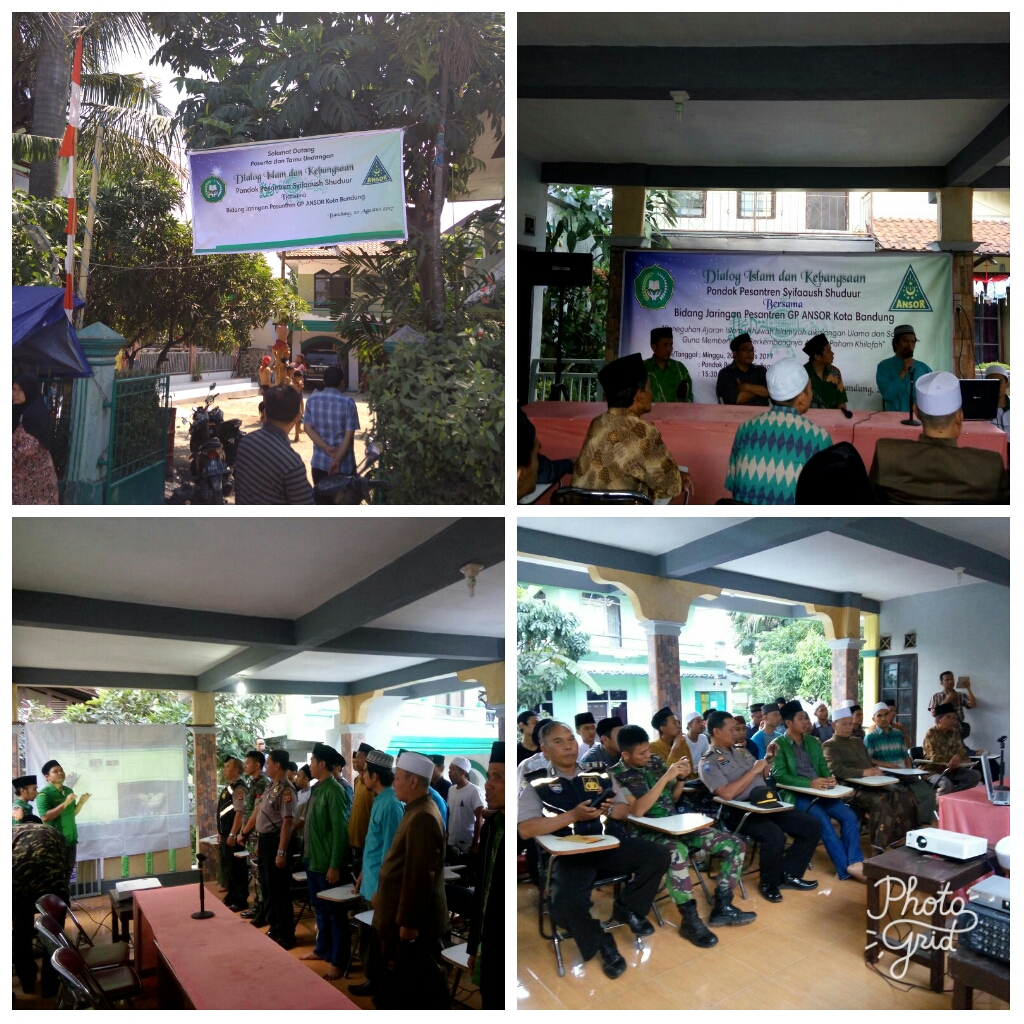 Hal yang sama digelar di Pondok Pesantren Syifaaush Shuduur kerjasama dengan Bidang Jaringan Pesantren GP Ansor Kota Bandung dengan bentuk dialog tentang Islam dan kebangsaan, Minggu (20/08/2017) sore, di Kelurahan Cibaduyut Kidul Kecamatan Bojongloa Kidul Kota Bandung.