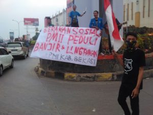 Cikarang Utara – Puluhan mahasiswa yang tergabung dalam Pergerakan Mahasiswa Islam Indonesia Kabupaten Bekasi menggelar aksi pungut sampah dan penggalangan bantuan korban banjir di pusat kota Cikarang, kemarin.