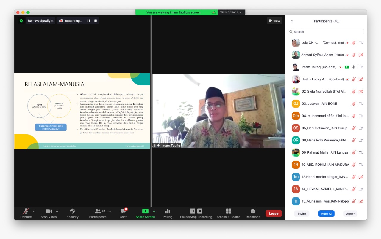 Imam Taufiq menyampaikan materi, Tantantangan Indonesia kotemporer (2021-2030) dalam Bidang Lingkungan Hidup Dan Perubahan Iklim. Dihadapan 80 peserta yang merupakan aktifis kampus Imam Taufiq menegaskan bagaimana pentingnya peran mahasiswa dalam menangani problematika lingkungan hidup dan perubahan iklim yang saat ini semakin menghawatirkan.