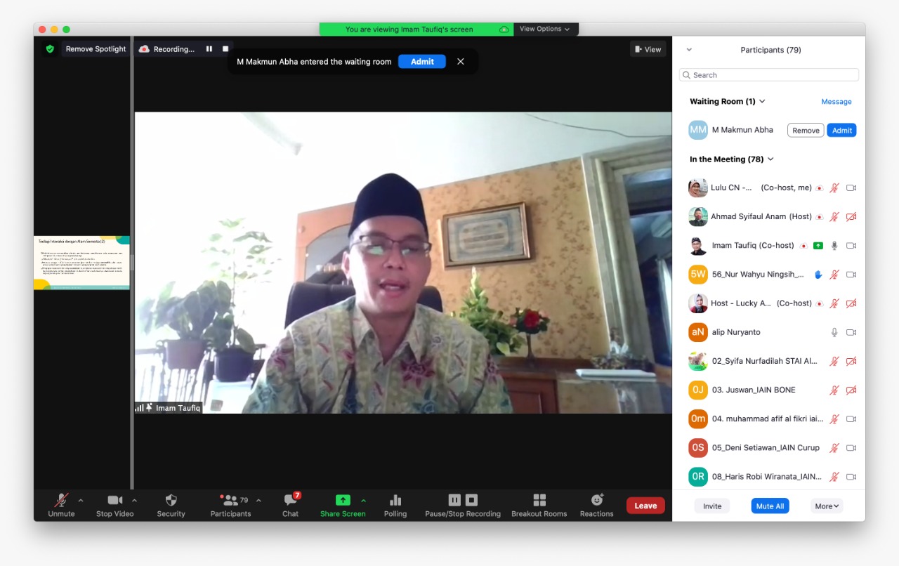 Semarang–Kementerian Agama melalui Direktorat Pendidikan Tinggi Keagamaan Islam Ditjen Pendidikan Islam menghadirkan Rektor UIN Walisongo Semarang Prof. Dr. Imam Taufiq, M.Ag., pada acara Pendidikan dan Pelatihan Kepemimpinan Mahasiswa Tingkat Nasional (Diklatpimnas) yang digelar secara virtual, Rabu (23/12).