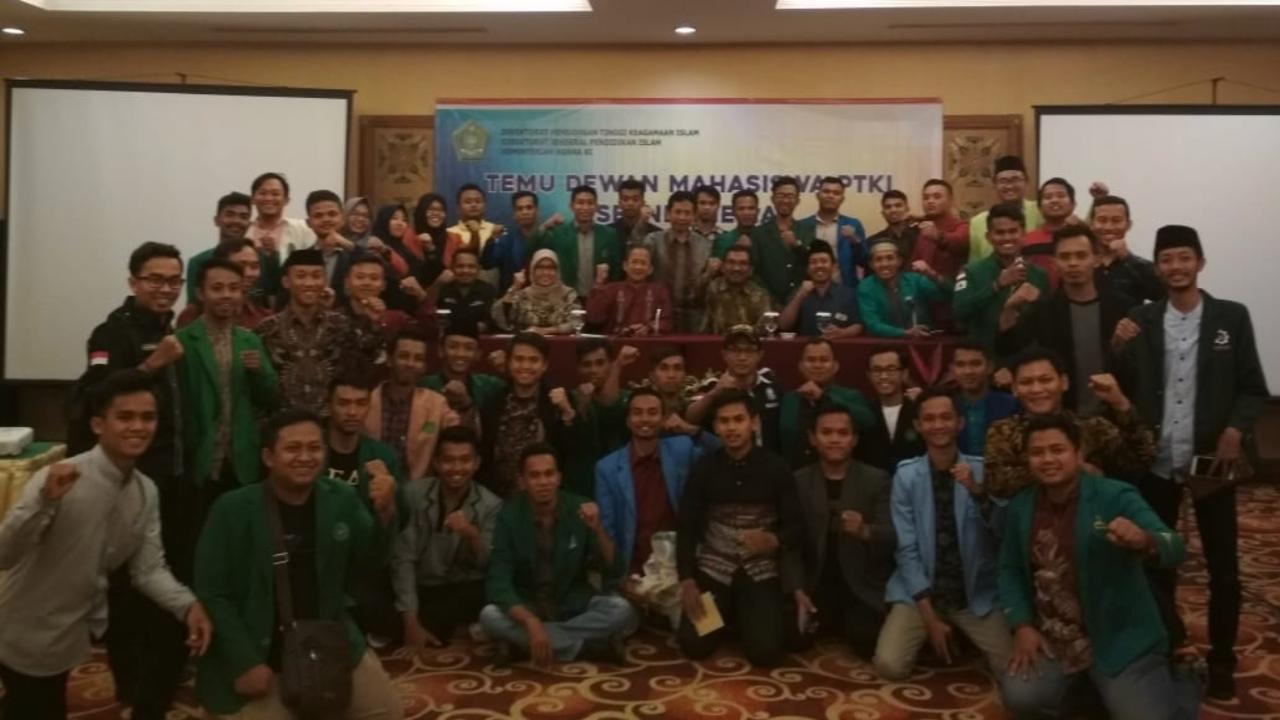 Kegiatan Temu DEMA PTKI se-Indonesia dilaksanakan pada tanggal 26-28 September 2018 diikuti oleh 68 orang perwakilan dari 58 PTKIN se-Indonesia. Tampak hadir menjadi nara sumber Abdur Rozaki Aktivis ’98, Waryono Wakil Rektor III UIN Sunan Kalijaga Jogjakarta, M. Aziz Hakim Mantan Presiden Mahasiswa UIN Walisongo. Dari kalangan Ditjen Pendidikan Islam tampak hadir Nuryasin Kasi Sarpras PTKIN dan Otisia Arinindiyah Kasi Sarpras PTKIS. (Pipo).