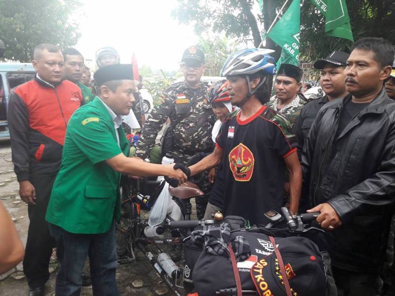 Pantauan Ansor Jabar Online, Hakam Mabruri dan Rofingatul Islamiah, bersepeda dari Daerah Malang, Jawa Timur sejak tanggal 17 Desember lalu. Dan sampai di perbatasan Jawa Tengah dan Jawa Barat, pada sekitar pukul 09.00 Wib.