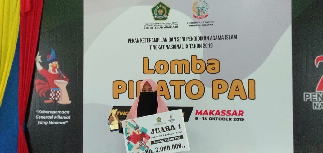 Namanya Alima Sri Sutami Mukti Siswi SMA IT Al-Huda,sekaligus Santri Pengurus IPPNU Pimpinan Komisariat Ponpes Al-Huda Al-Musri’1 Kabupaten Cianjur yg jadi perwakilan Jawa Barat Dipentas PAI.yang berhasil meraih juara 1 lomba PIDATO PAI dengan materi “Keberagaman Generasi Milenial yang moderat”