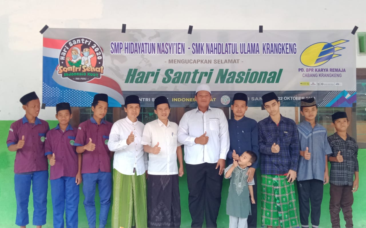Kamis, 22 Oktober 2020 SMP Hidayatun Nasyi’ien dan SMK NU kerangkeng peringati Hari Santri Nasional yang dilaksanakan di Yayasan Toybatul Ma’arif, kegiatan dihadiri oleh siswa guru dan pengurus yayasan.
