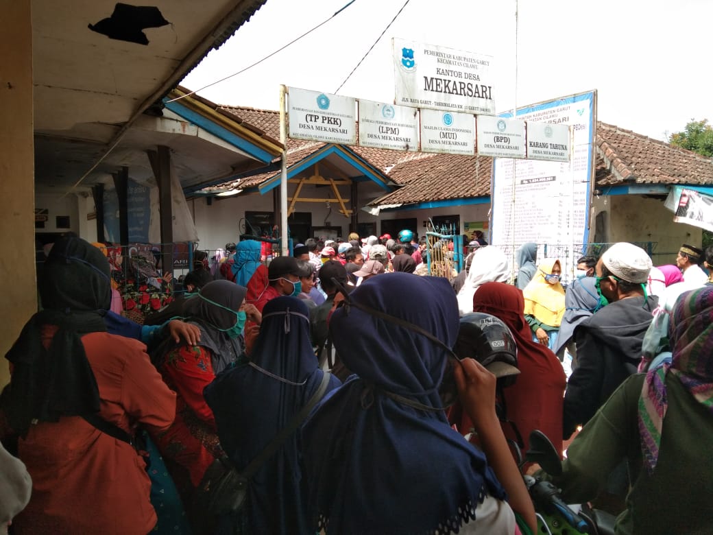 Polemik Bantuan Sosial (bansos) yang bersumber dari Pemerintah Provinsi Jawa Barat kembali terjadi. Di Kecamatan Cilawu Kabupaten Garut, masyarakat yang terdata sebagai penerima bansos berdesak-desakan tanpa mengikuti protokol Covid-19.