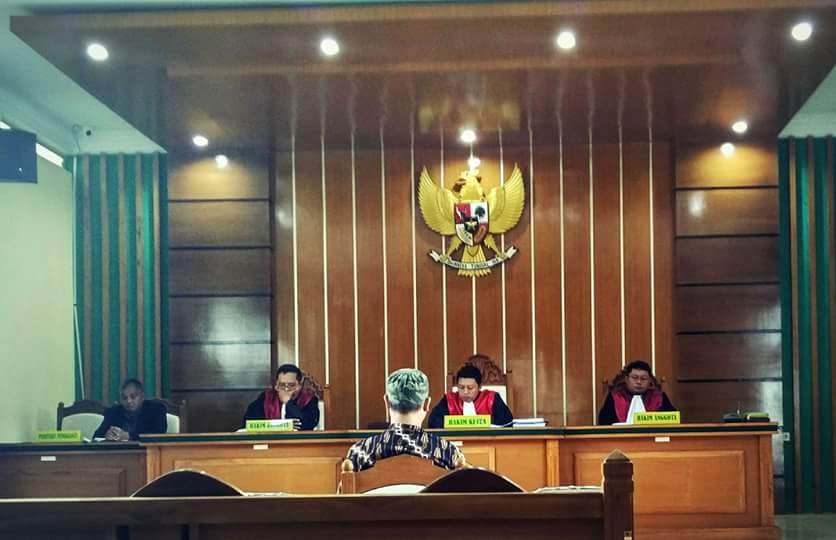 Hakim Ketua, Purwanta SH,MH, Hakim anggota Buse Prayudu SH,MH, Hakim anggota Yogi Rachmawan SH,MH langsung meninggalkan ruang sidang setelah dibacakan putusan. Yang sebelumnya mempersilakan terdakwa menanggapi putusan tersebut paling lama tujuh hari.