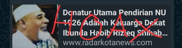 Tidak Benar kabar bahwa Donatur terbesar pendirian NU adalah dari kluarganya Habib Riziek Syihab .