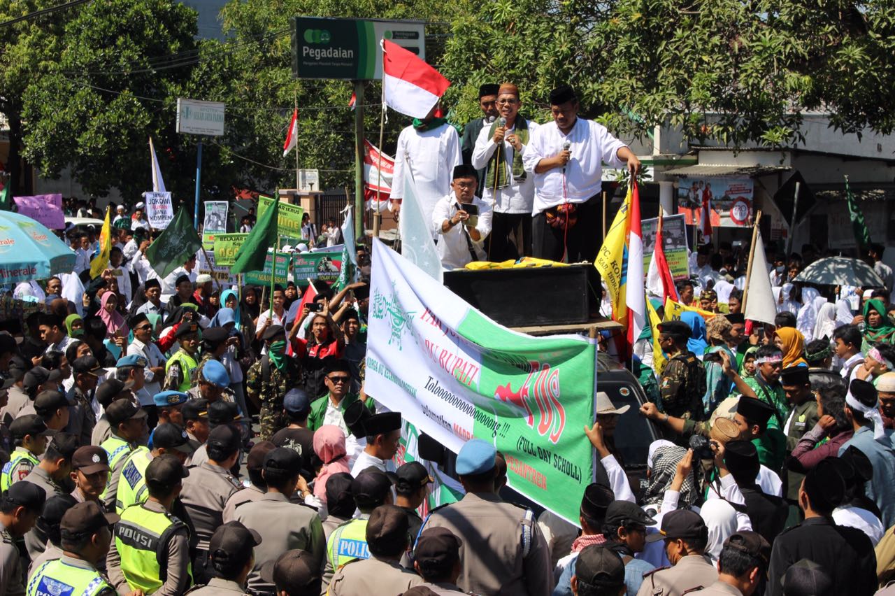 Pantauan AnsorJabar, masa aksi yang sudah mulai memadati Gedung Dakwah PCNU sejak pagi itu melakukan long march ke Pendopo Bupati Indramayu dan gedung DPRD sambil menyuarakan penolakan terhadap kebijakan Menteri Pendidikan dan Kebudayaan melalui Permendikbud nomor 23 Tahun 2017 itu..