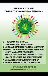 Poster itu bertuliskan ‘Bersama Kita Bisa Cegah Corona dengan BISMILLAH’ itu telah disebar seluruh civitas akademika UIN Malang. Lantas apa itu BISMILLAH.