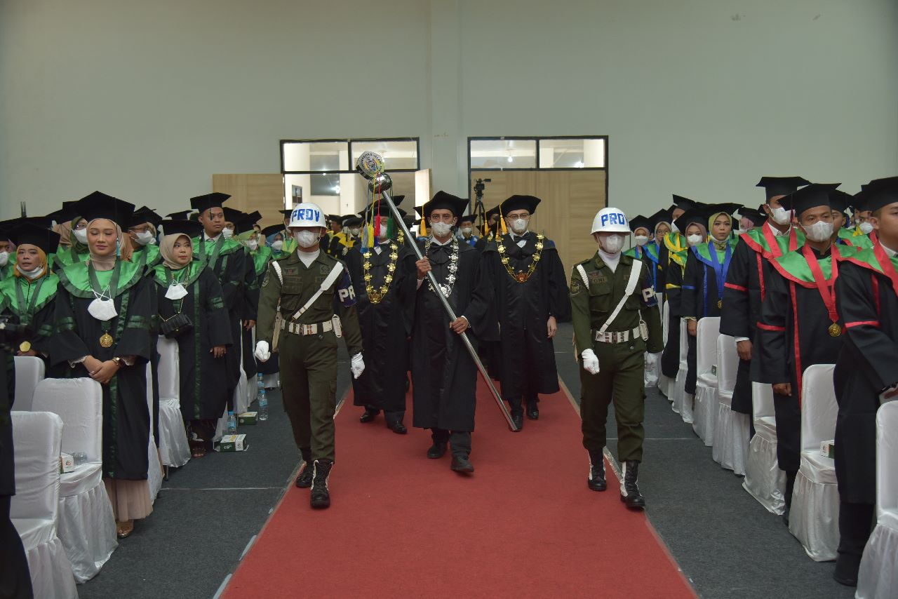“Wisuda ini merupakan proses seremonial. Selain menandai berakhirnya proses belajar-mengajar yang formal, namun juga menandai dari awal bagi Anda untuk memulai kehidupan dengan titel yang Saudara Sudari sandang,” katanya.