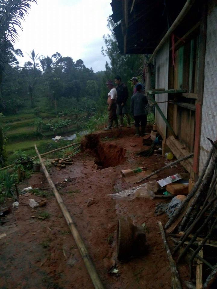 “Sejak siang tadi disini hujan deras. Ada dua rumah yang tertimpa longsoran. Dan satu rumah lagi hampir tergusur. Ada sejumlah retakan yang dikhawatirkan menimbulkan longsor susulan”, kata Hendi.